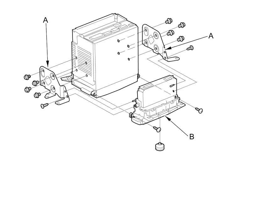3. Remove the self-tapping screws and separate the audio unit and the HVAC control unit (B).