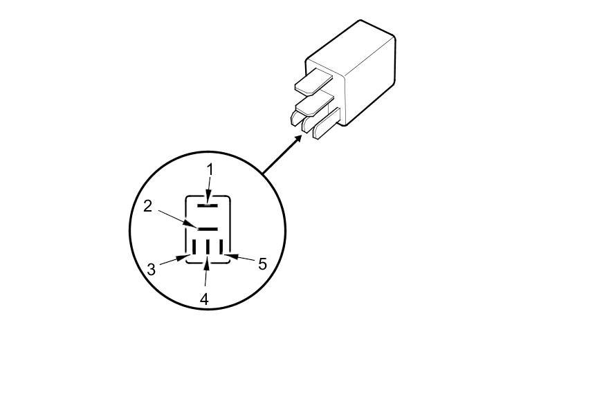 - There should be continuity between terminals No. 1 and No. 2 when battery power is connected to terminal No. 5, and body ground is connected to terminal No. 3.