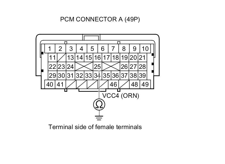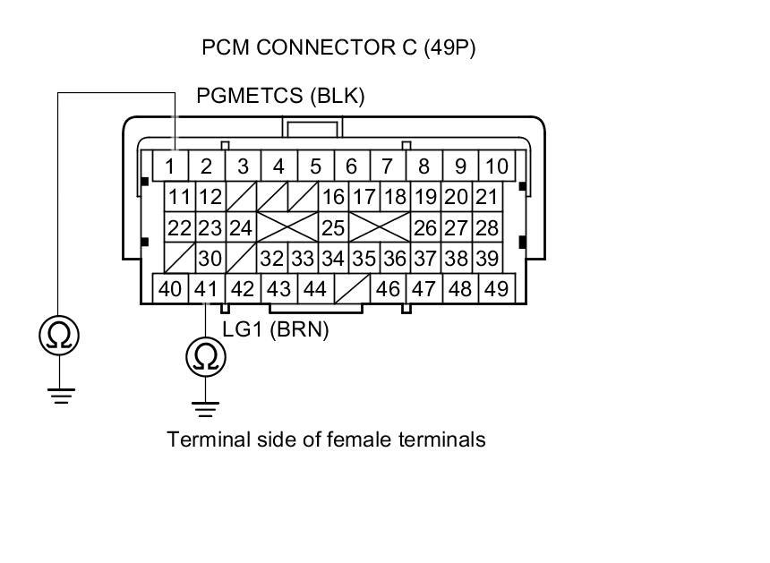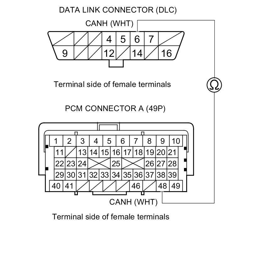 33. Check for continuity between PCM connector terminal A49 and DLC terminal No. 14.