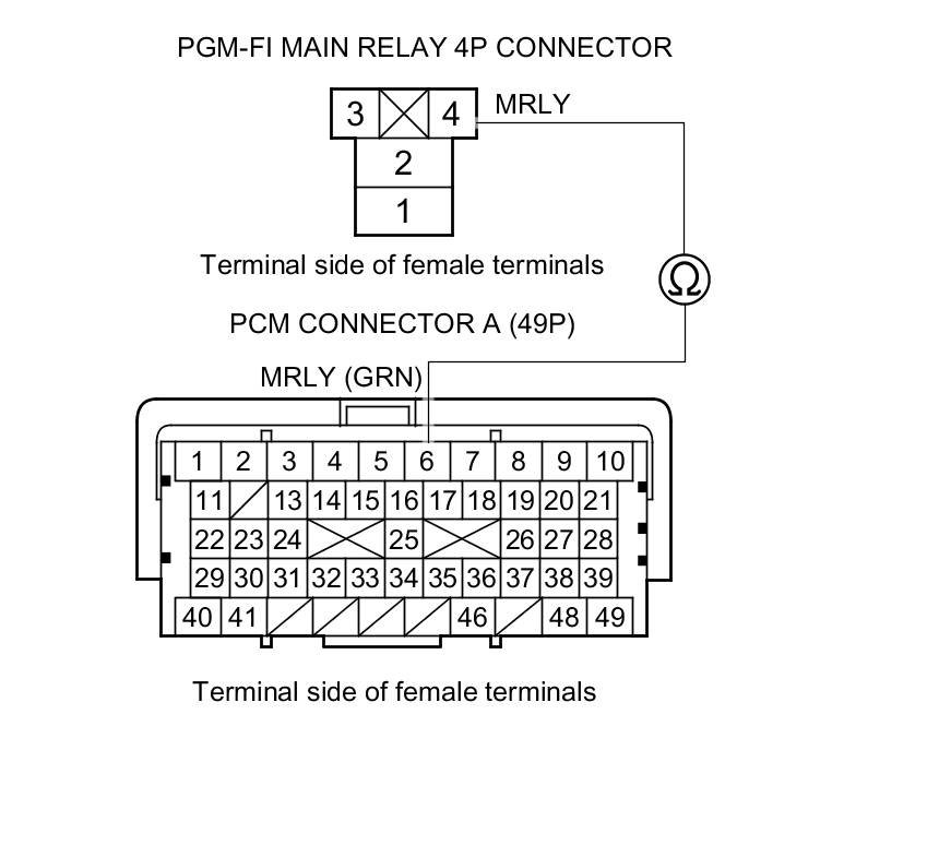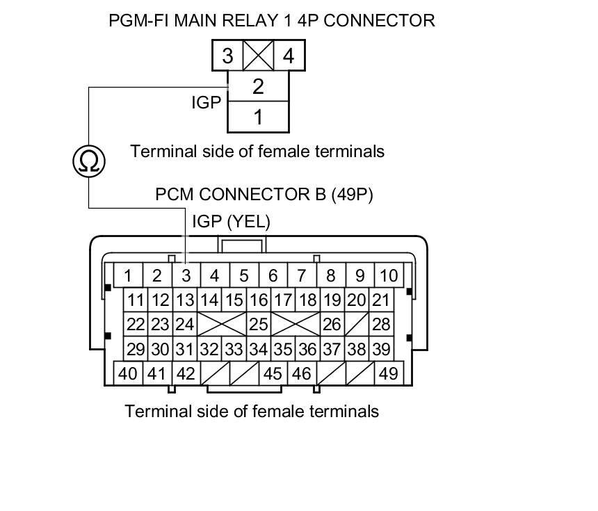 47. Test PGM-FI main relay 2 (FUEL PUMP) Testing and Inspection.