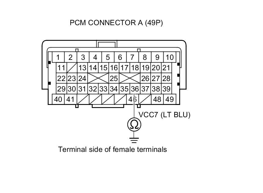 61. Disconnect PCM connectors A (49P) and B (49P).