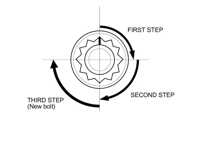After torquing, tighten all cylinder head bolts in two steps (90 ° per step) using the sequence shown in step 11. If you are using a new cylinder head bolt, tighten the bolt an extra 90 °.