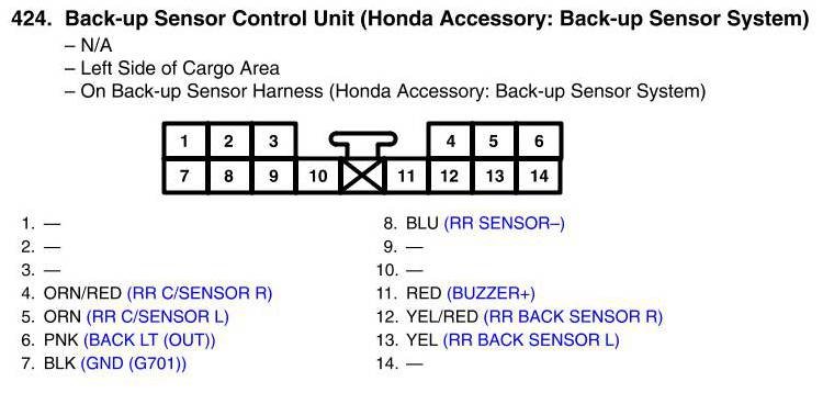 Back-Up Sensor Control Unit Connector View (Honda Accessory: Back-Up Sensor System)