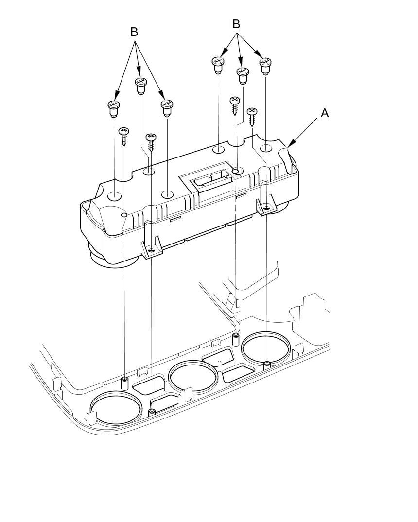 2. Remove the self-tapping screws and the climate control unit (A). If necessary, replace the bulbs (B).