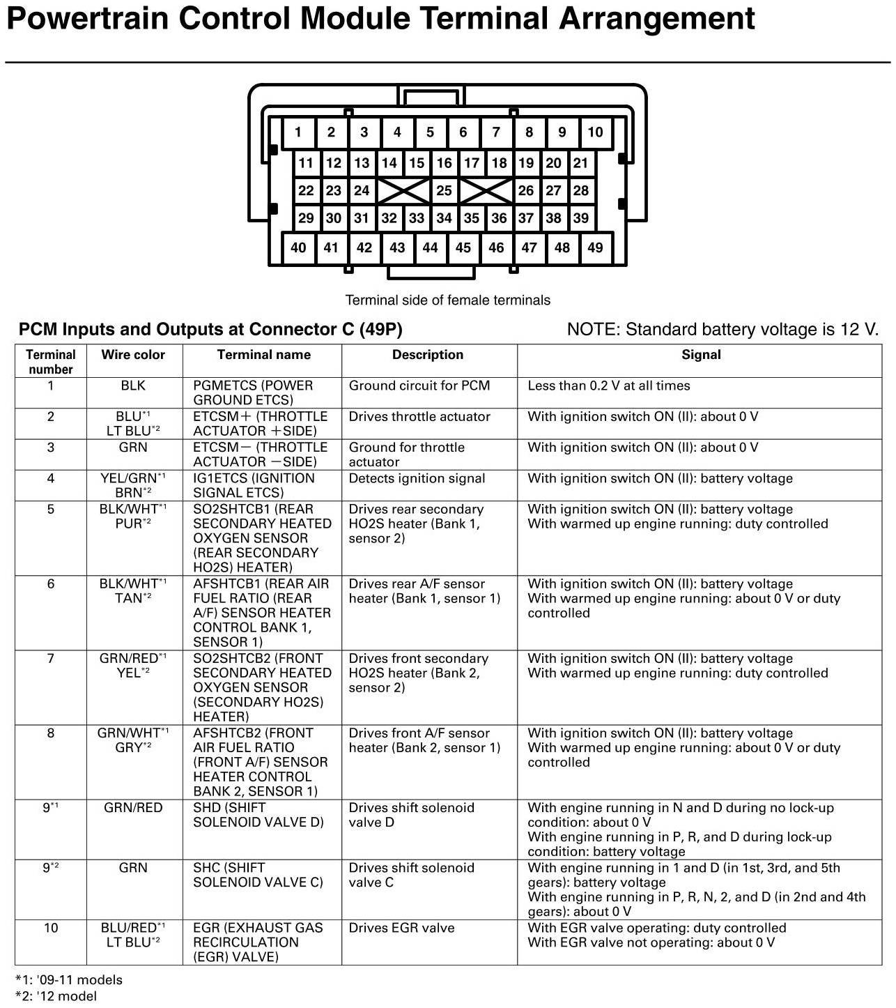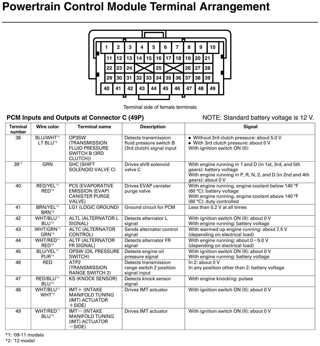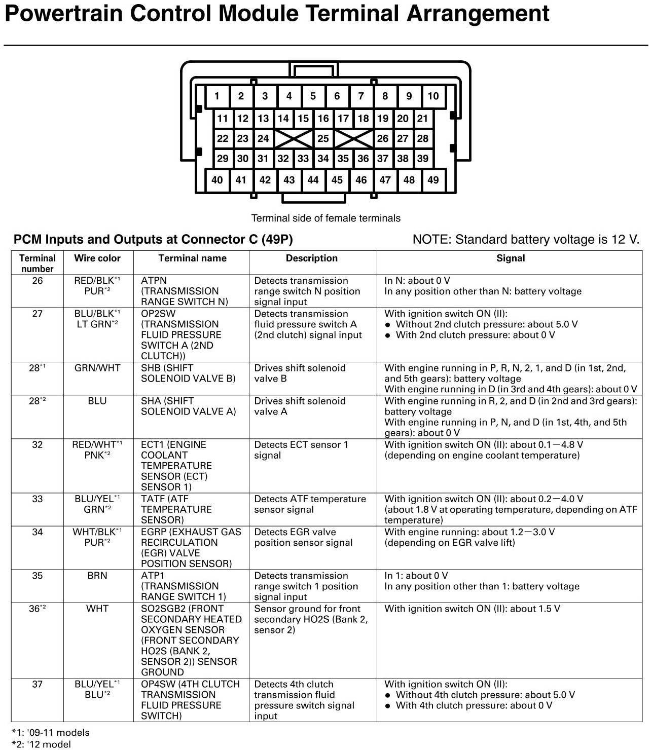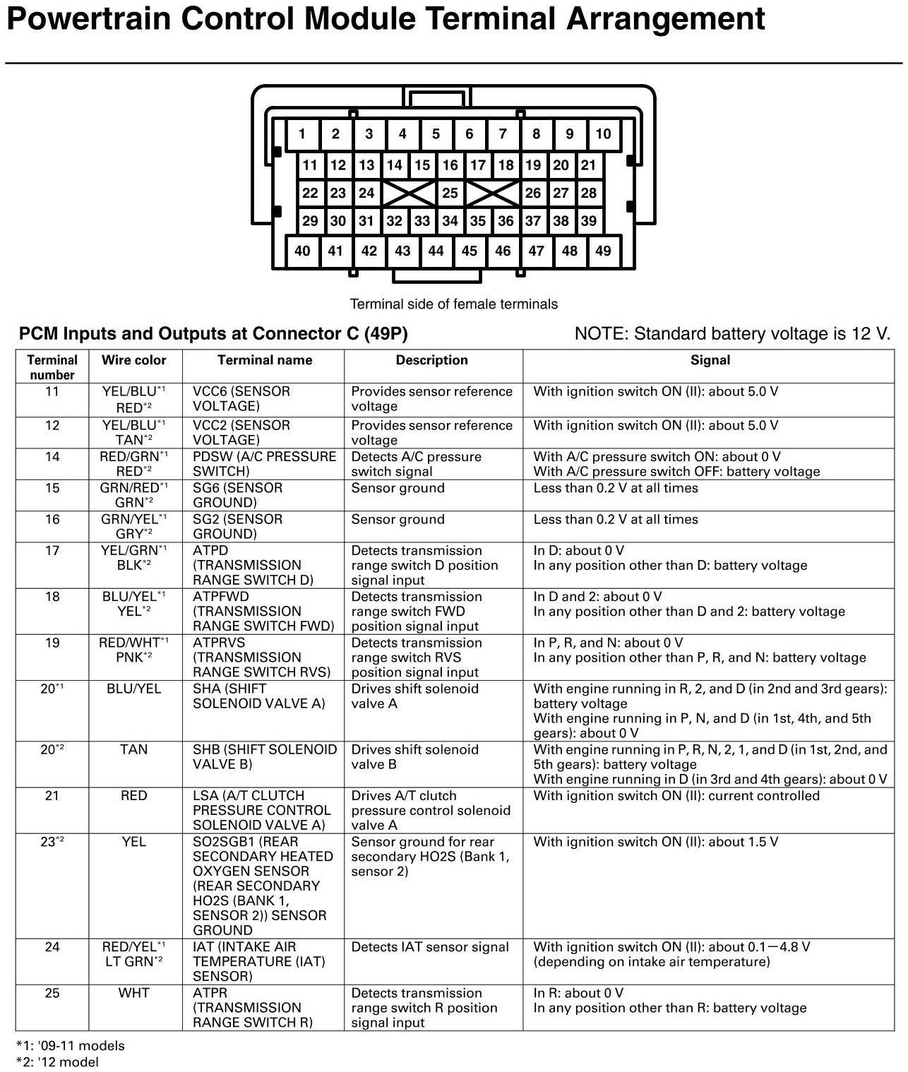 PCM Inputs And Outputs At Connector C