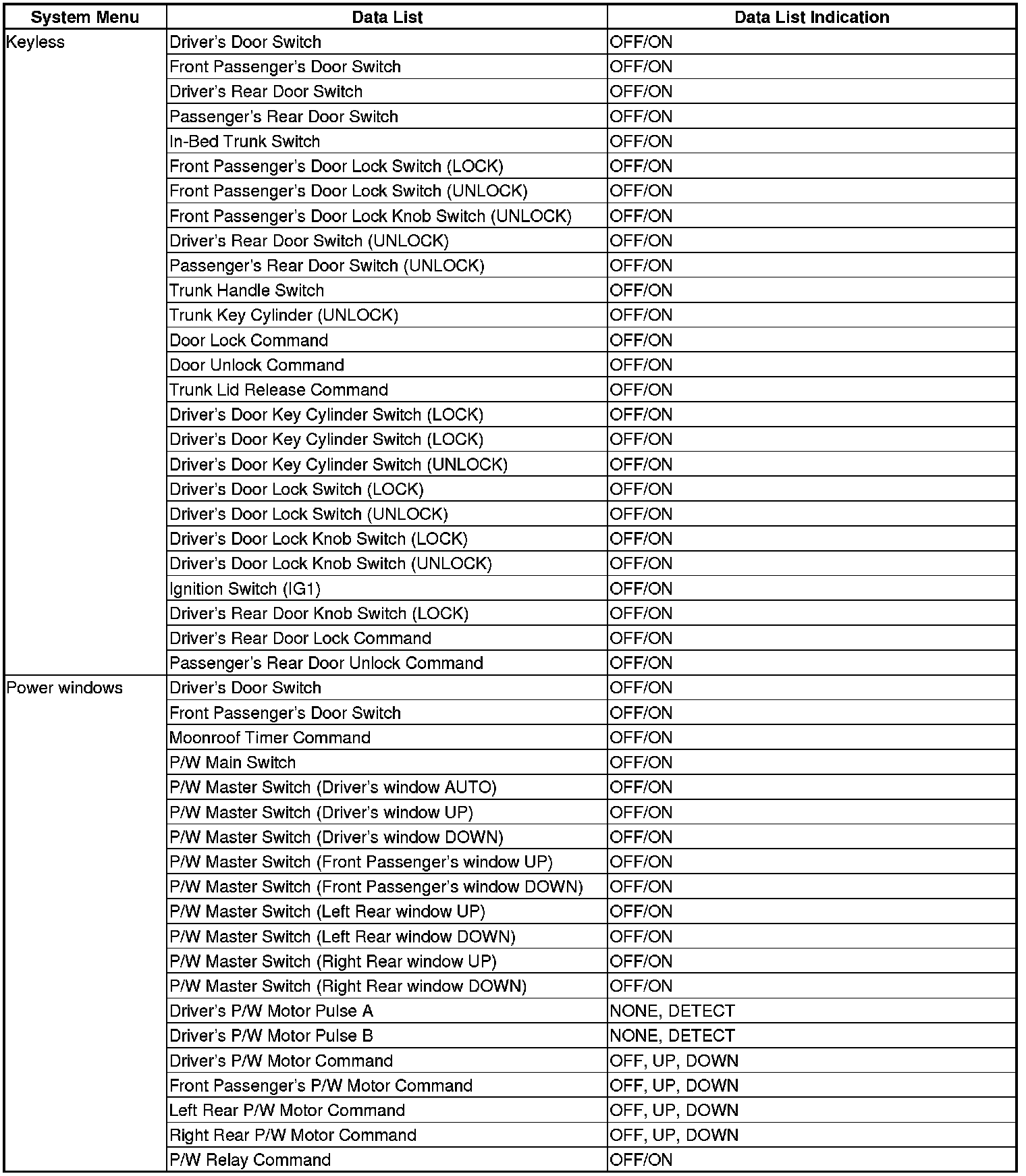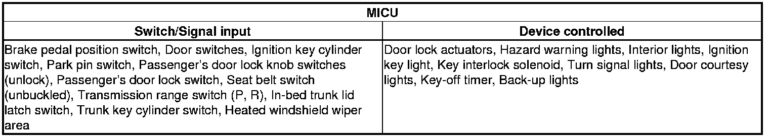 - The multiplex integrated control unit (MICU), relay control module, and gauge control module receive the door lock switch message.