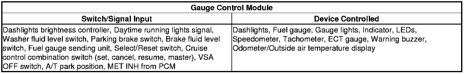 The body controller area network (B-CAN) and the fast controller area network (F-CAN) share information between multiple electronic control units (ECUs). B-CAN communication moves at a slower speed (33.33 kbps) for convenience related items and for other functions. F-CAN information moves at a faster speed (500 kbps) for "real time" functions such as fuel and emissions data. To allow both systems to share information, the gauge control module translates and relays the information from B-CAN to F-CAN and from F-CAN to B-CAN. This is called the Gateway Function.