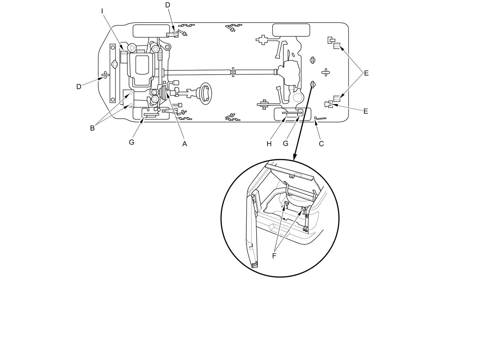 - Lubricate the following areas using the recommended lubricants and fluids.