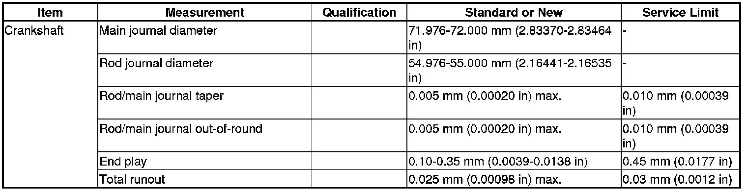 Crankshaft Specification(s)