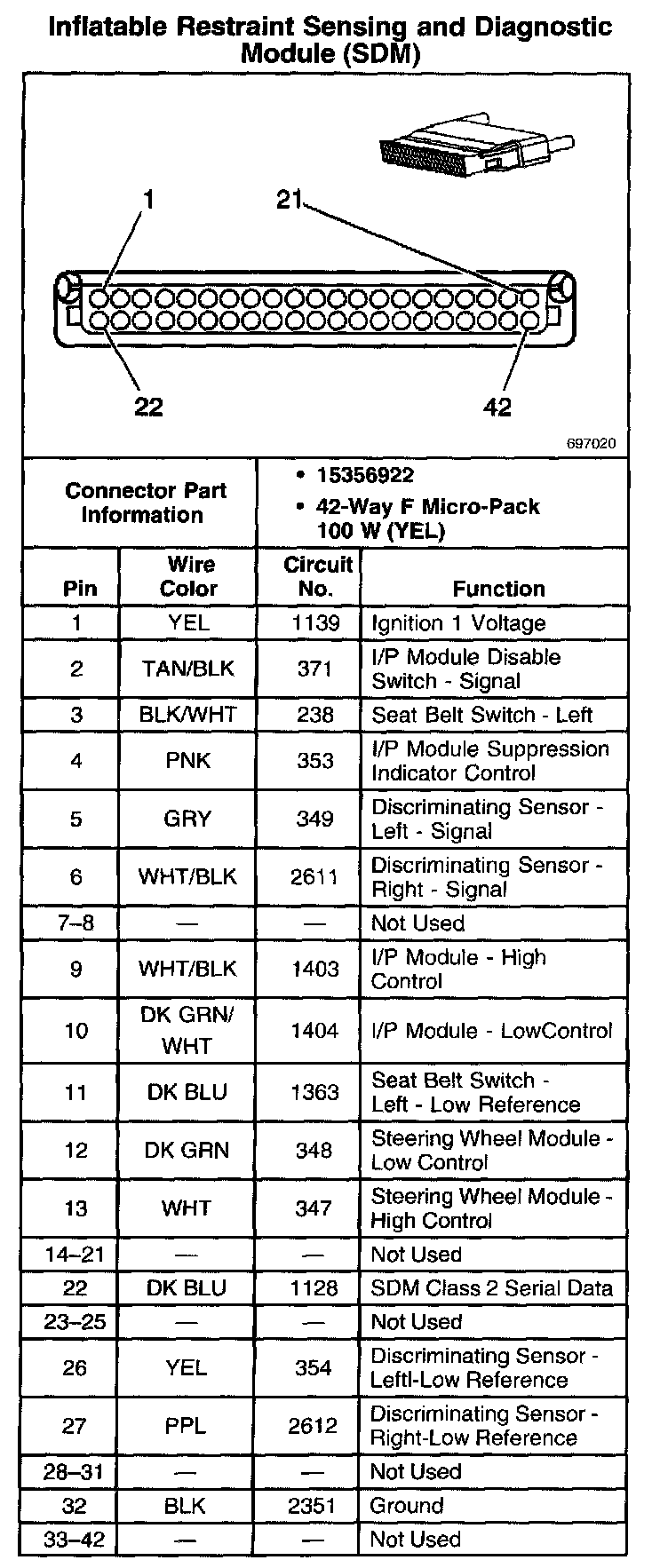 Inflatable Restraint Sensing And Diagnostic Module (SDM):