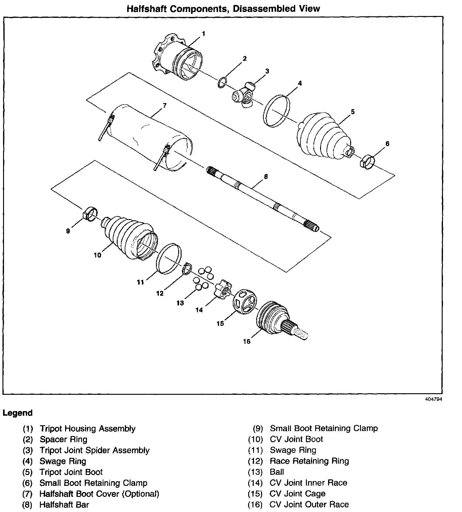 Halfshaft Components, Disassembled View: