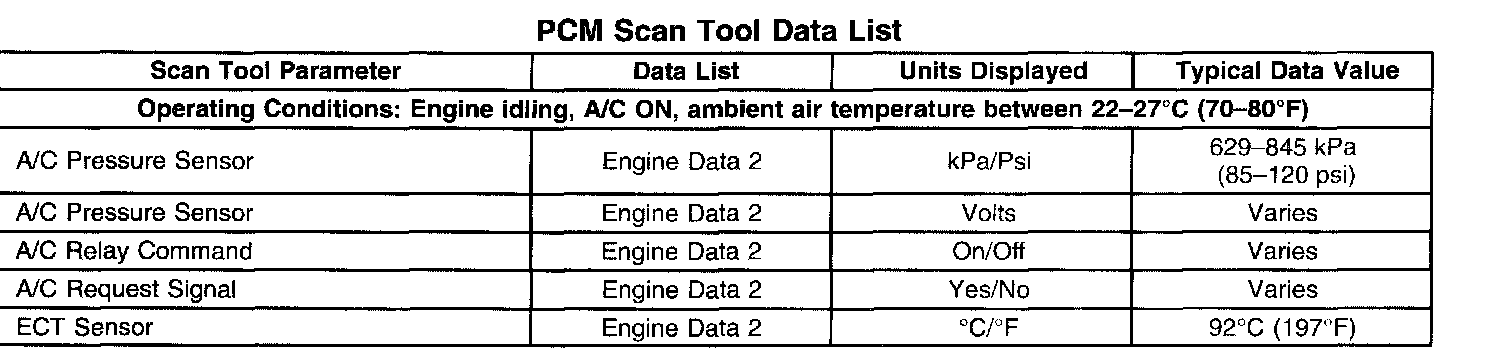 PCM Scan Tool Data List: