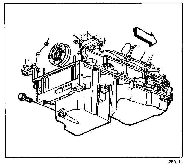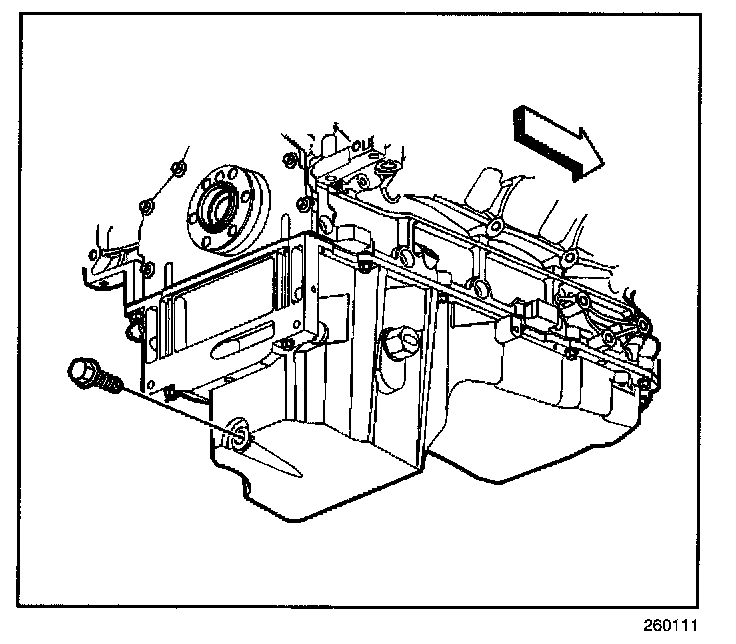 IMPORTANT: In order to completely drain the oil from the oil pan internal befitting, the bottom of the oil pan must be level during the oil drain procedure.