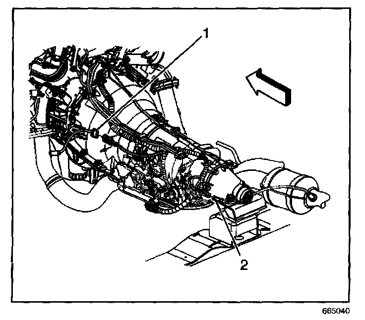 4. Disconnect the oxygen sensor electrical connectors (1, 2).