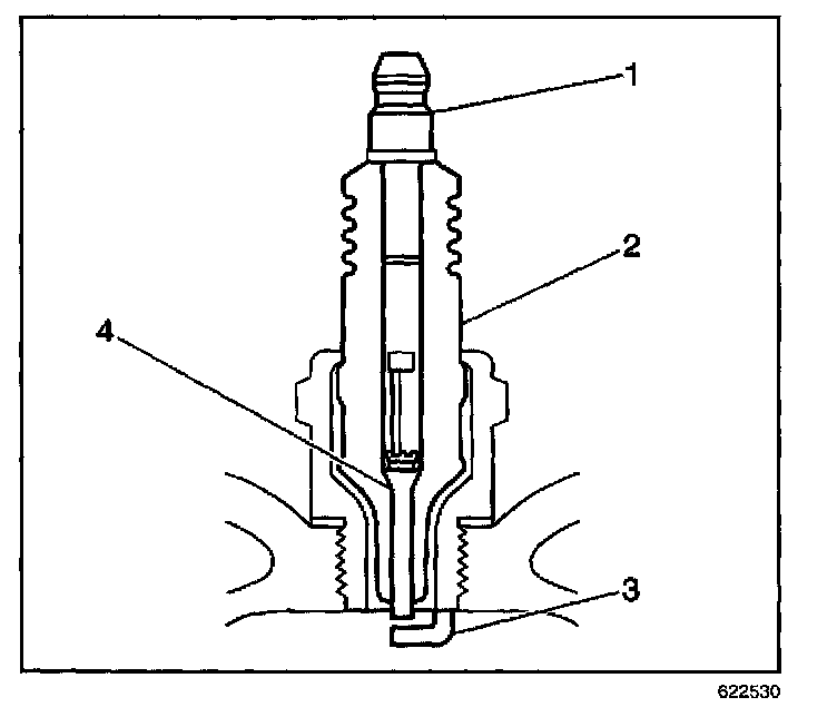- Inspect for a broken, worn, or loose center electrode (4) by shaking the spark plug.
