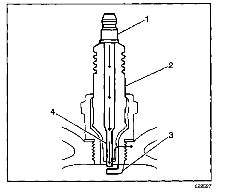 - Inspect for the correct spark plug torque. Insufficient torque can prevent correct spark plug operation. An over torqued spark plug, causes the insulator (2) to crack.