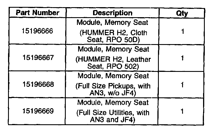 Home >> Hummer >> 2003 >> H2 V8-6.0L >> Repair and Diagnosis >> Relays and Modules >> Relays and Modules - Body and Frame >> Memory Positioning Module >> Technical Service Bulletins >> Customer Interest >> Memory Systems - Seat Heater/Memory Seat Function