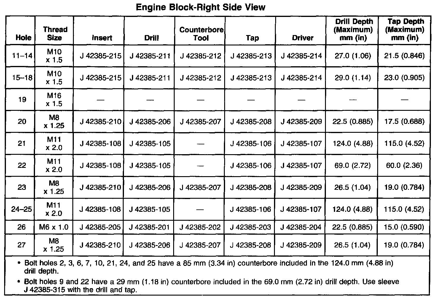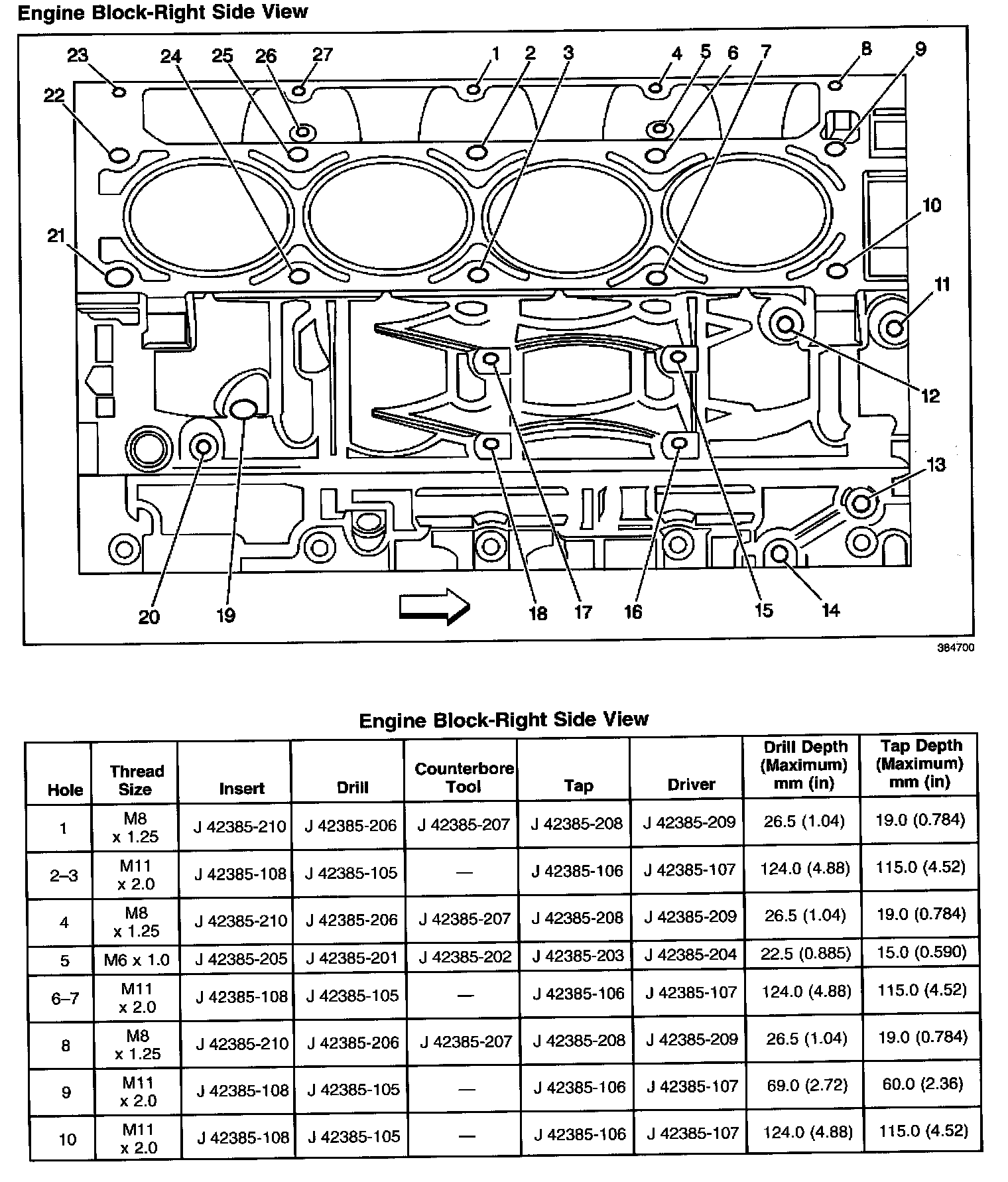 Thread Repair Specifications - Engine Block