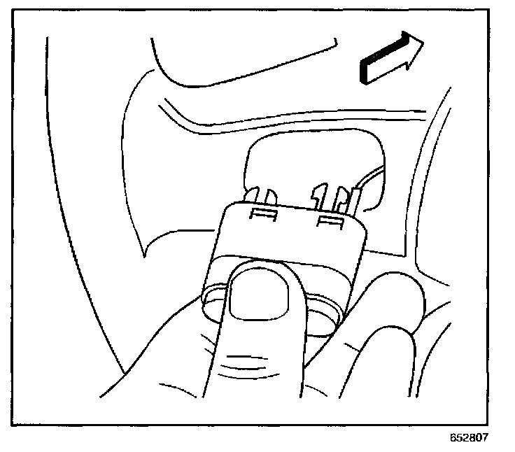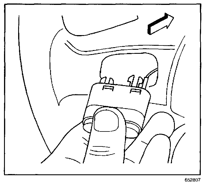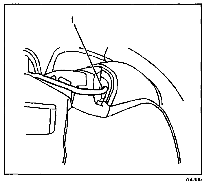 4. Position a blunt ended tool into the wire harness cavity (1) and apply moderate pressure in order to partially remove the steering wheel control switch from the steering wheel.
