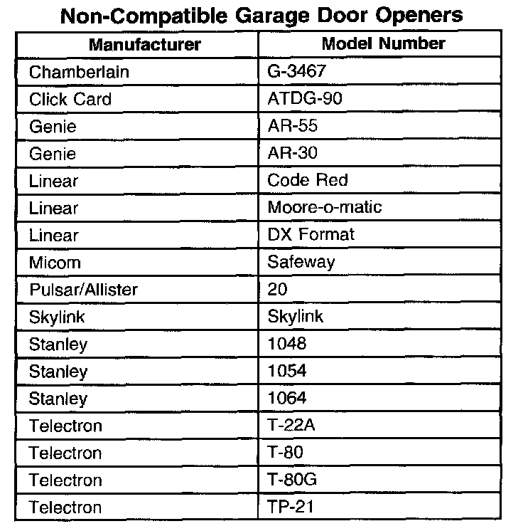 NON-COMPATIBLE GARAGE DOOR OPENERS