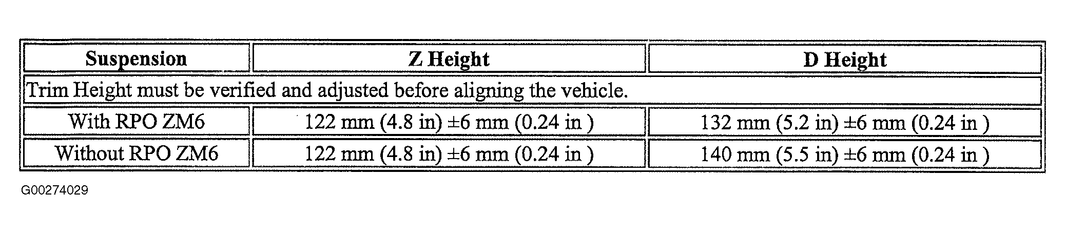 Trim Height Specifications