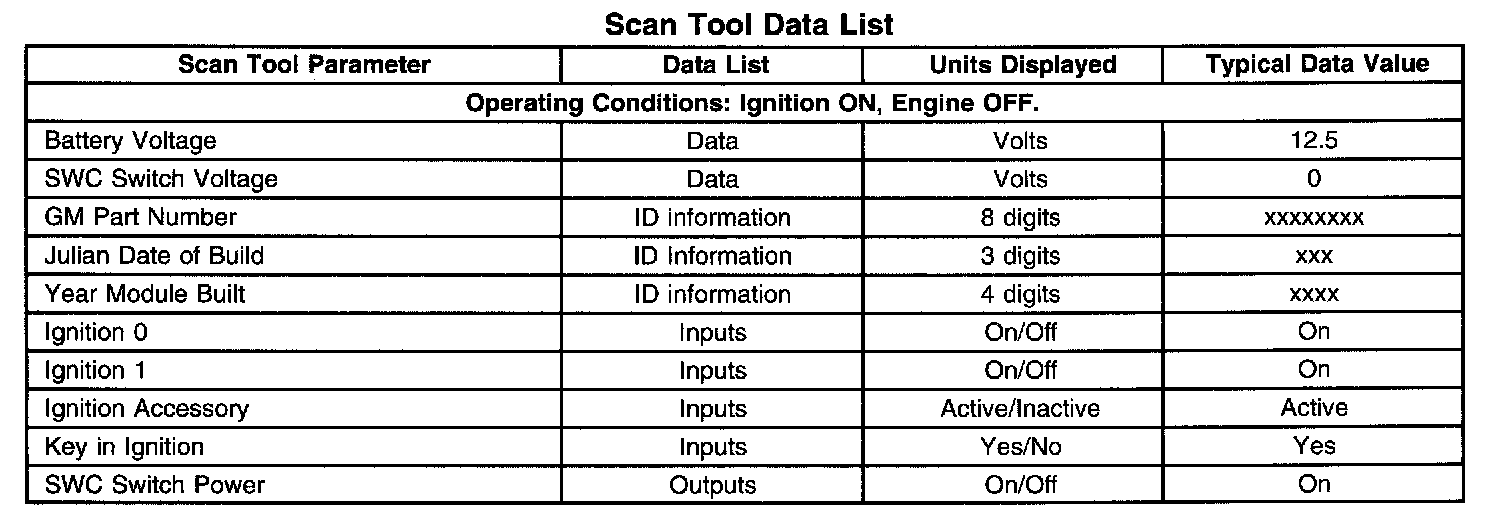 Scan Tool Data List: