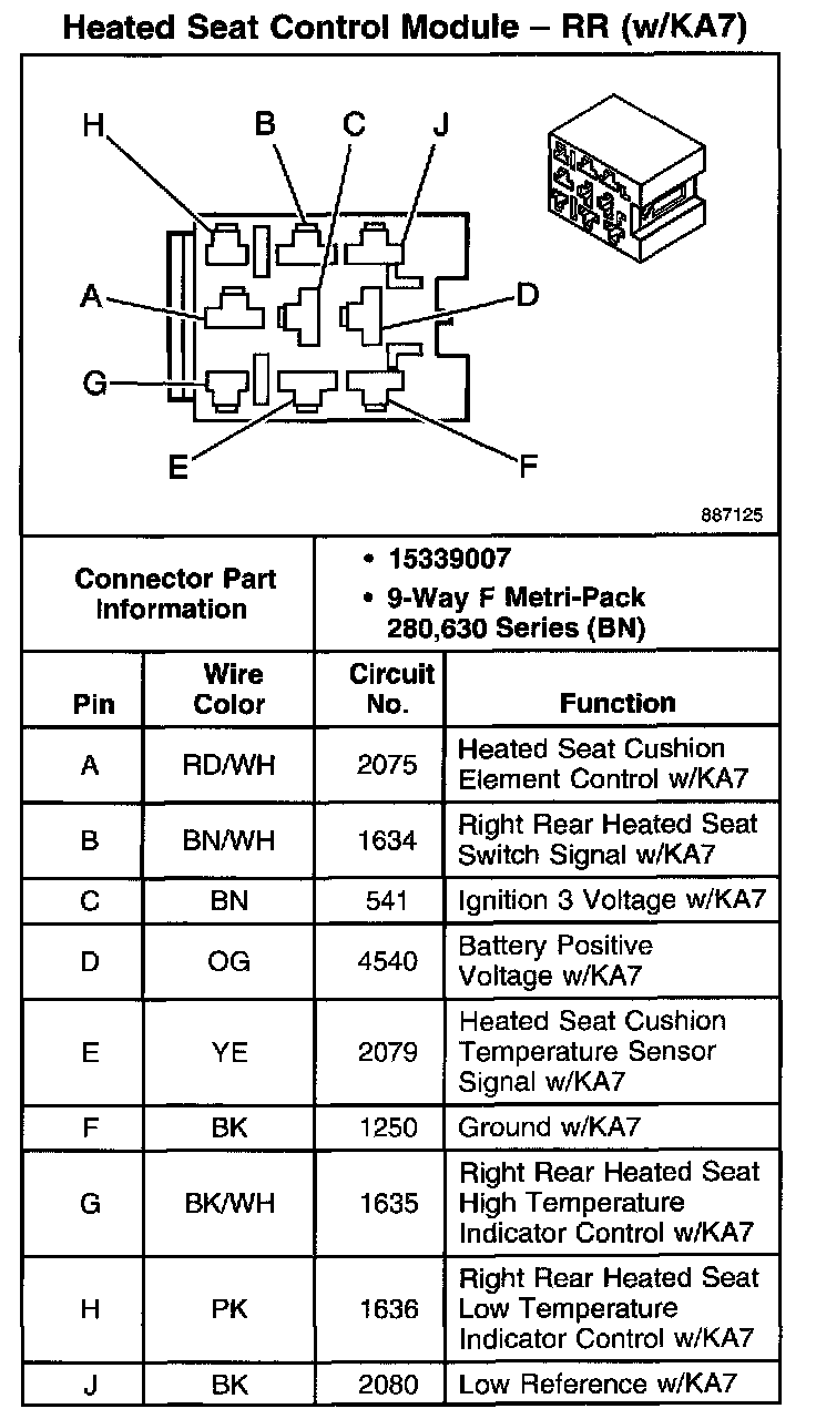 Heated Seat Control Module - RR (With RPO Code KA7):