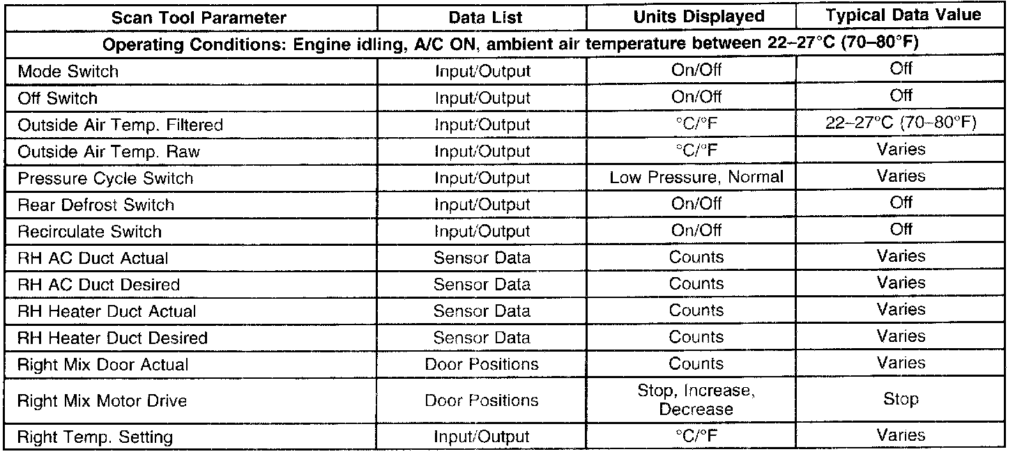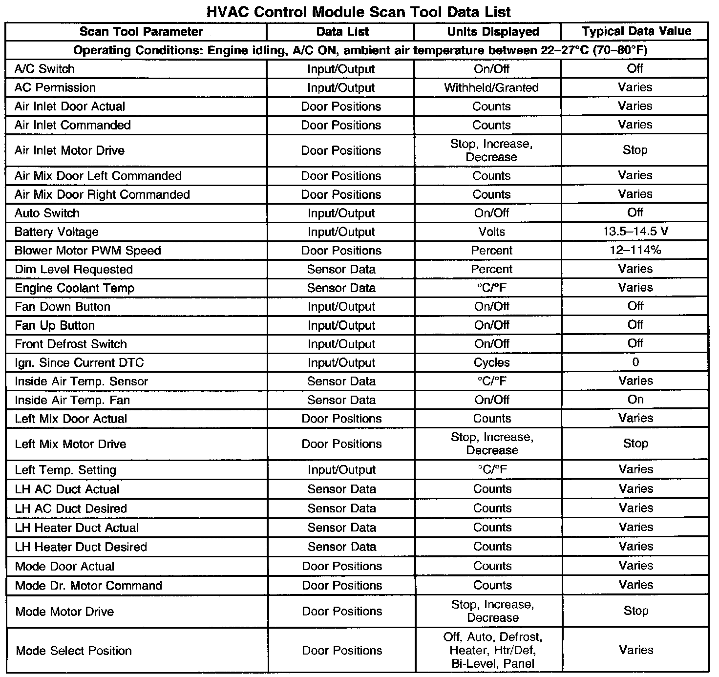 HVAC Control Module Scan Tool Data List