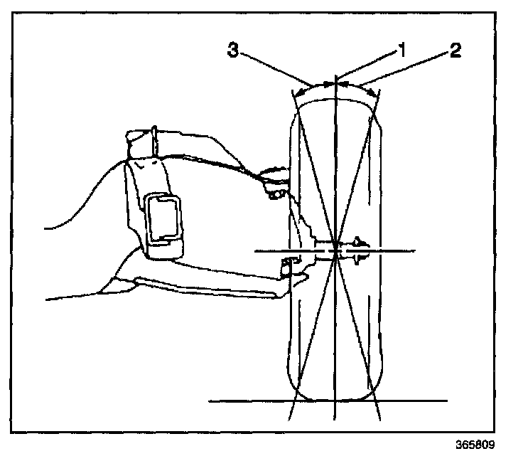 7. Determine the positive camber (2) or negative camber (3) angle.