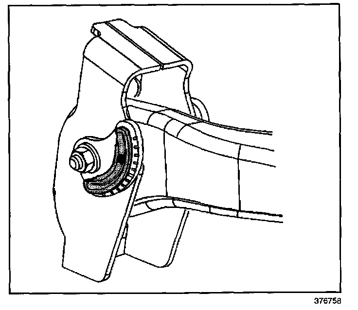 4. The caster and camber adjustments are made by rotating the offset cam bolt and the cam in the slotted frame bracket in order to reposition the control arm.