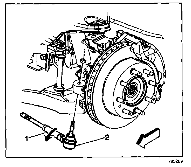 1. Loosen the jam nut on the tie rod (1).