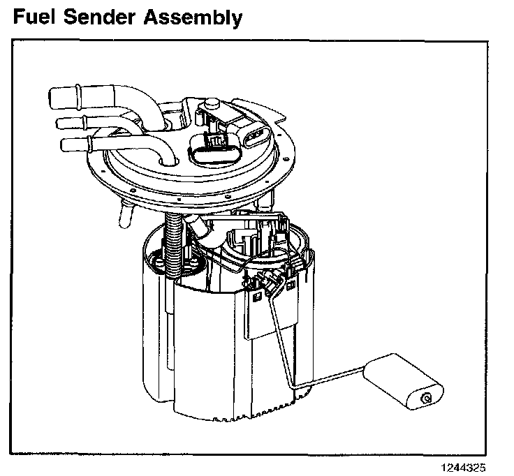The fuel sender assembly on single tank applications consists of the following major components: