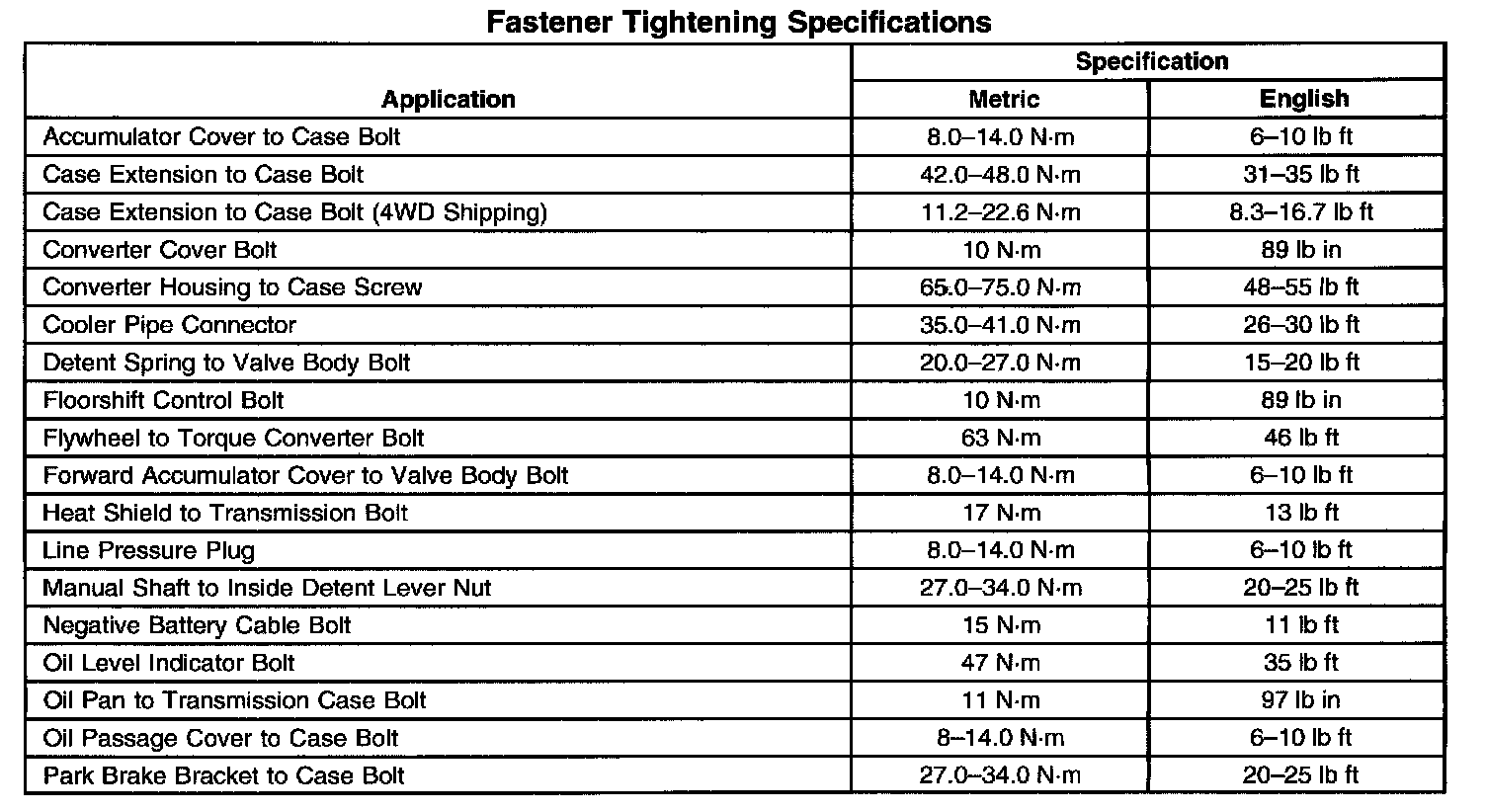 Fastener Tightening Specifications