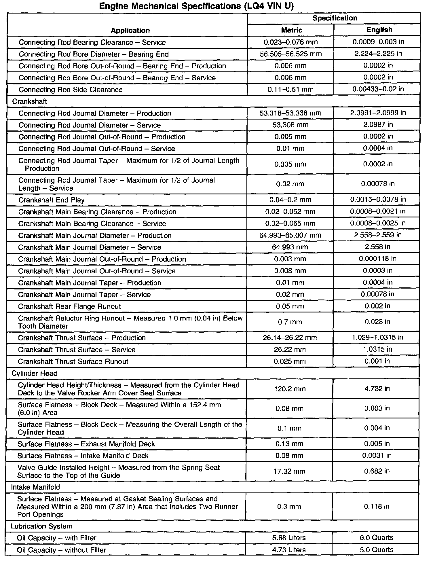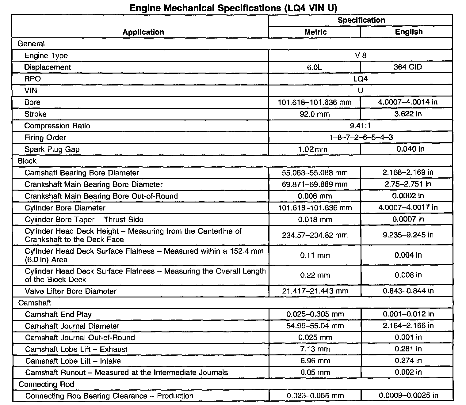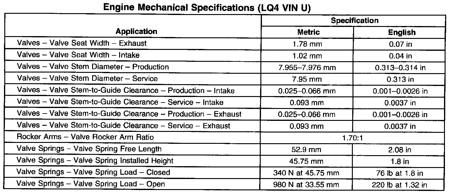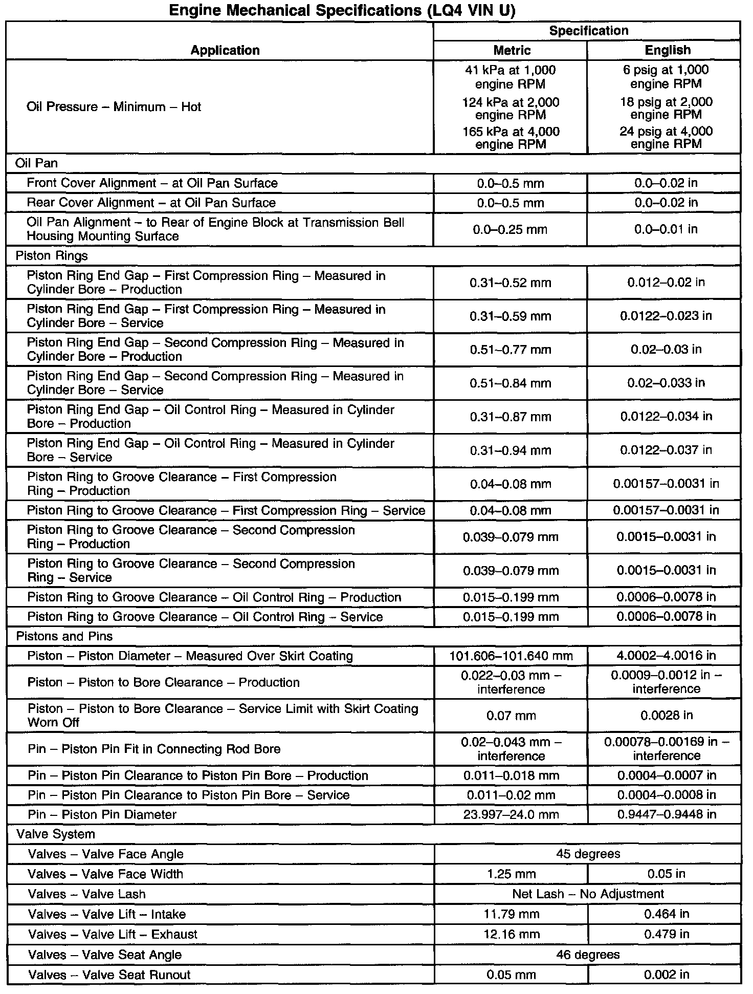 Engine Mechanical Specifications