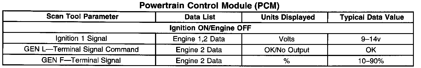 Scan Tool Data List - Powertrain Control Module (PCM):