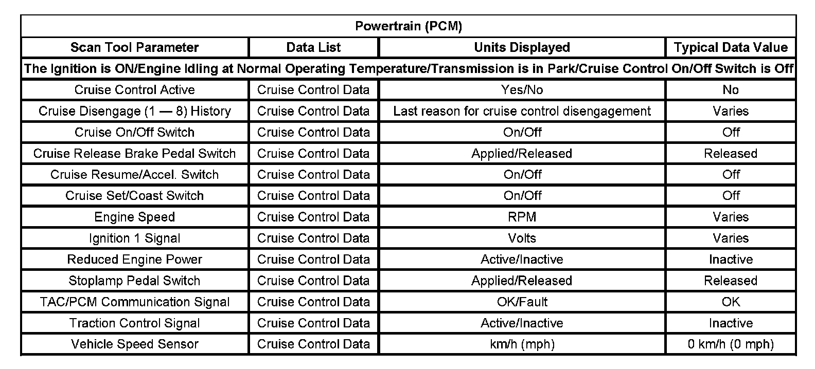 Scan Tool Data List