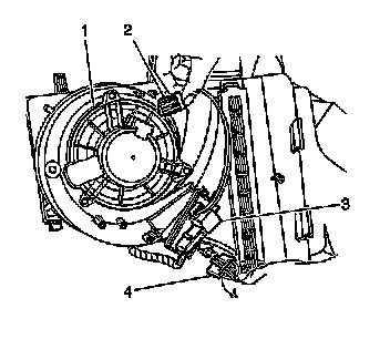 2. Disconnect the electrical connector (2) from the blower motor (1).