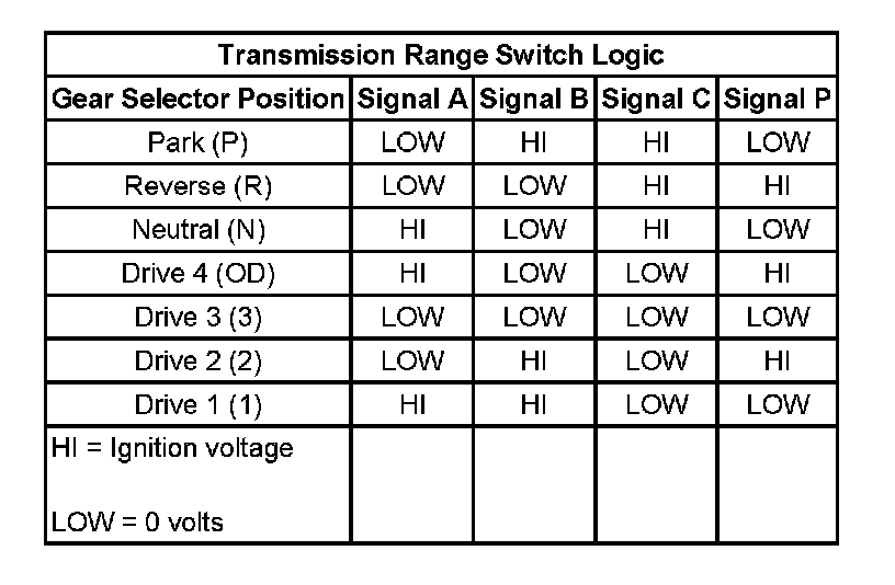 Transmission Range Switch Logic: