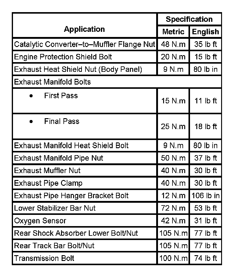 Fastener Tightening Specifications: