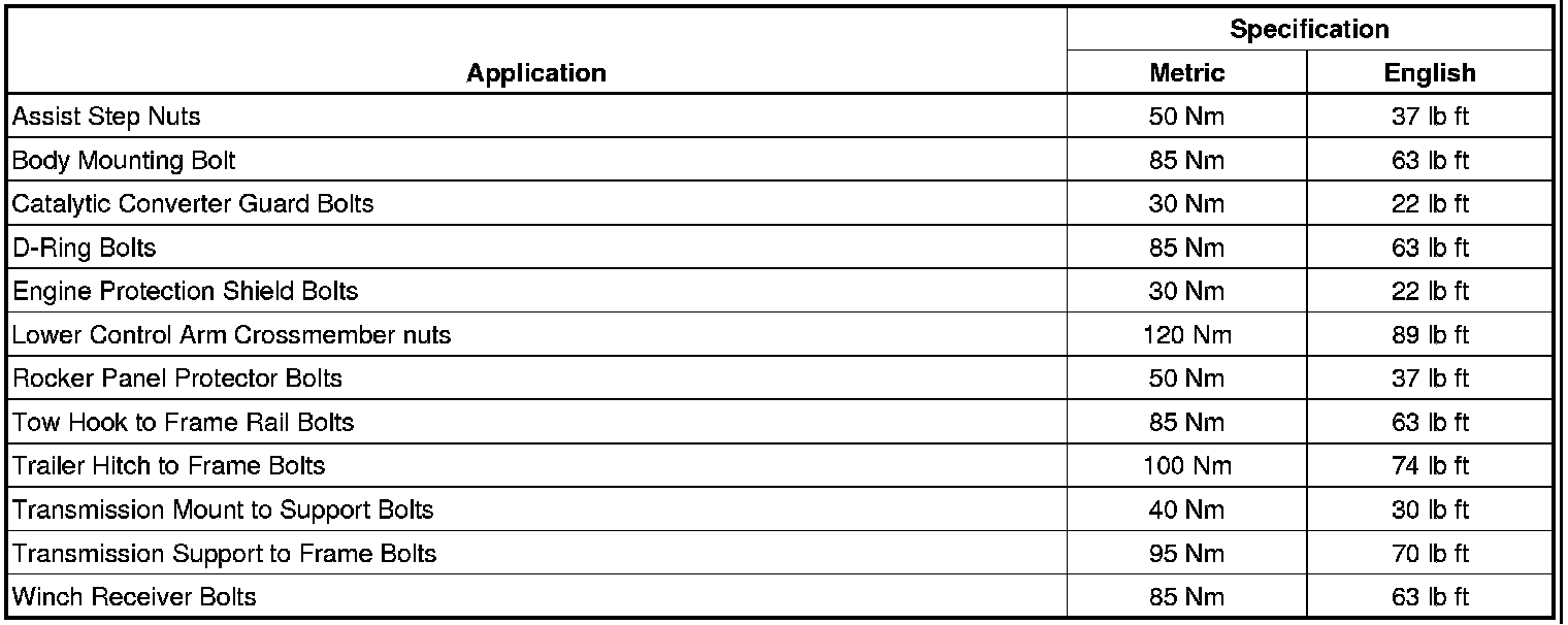 Fastener Tightening Specifications