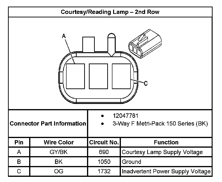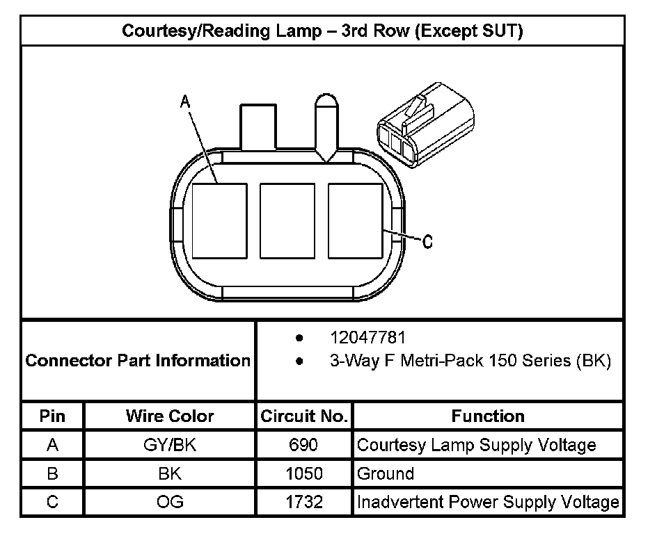 Courtesy/Reading Lamp - 3rd Row (Except SUT):