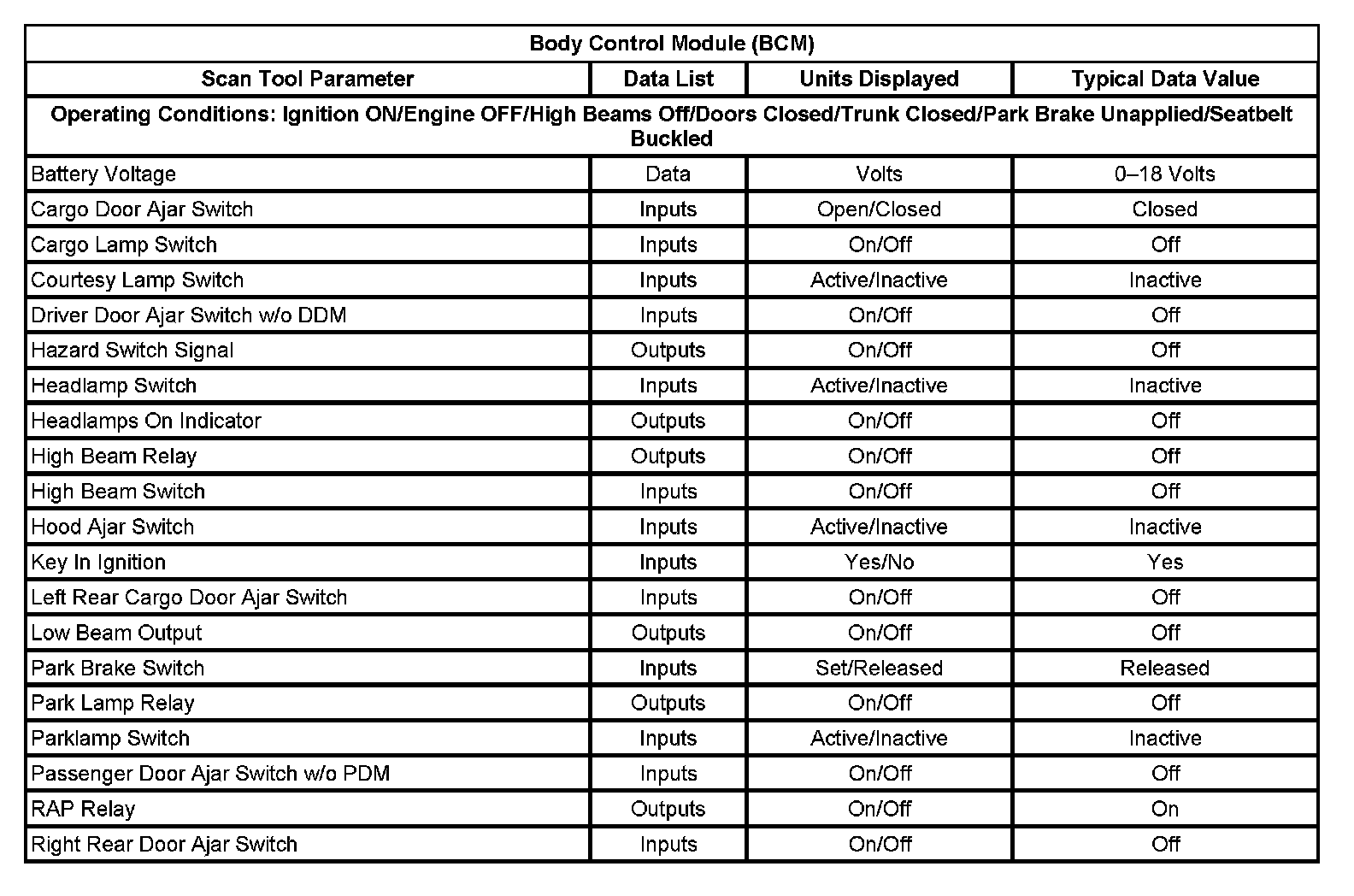Scan Tool Data List