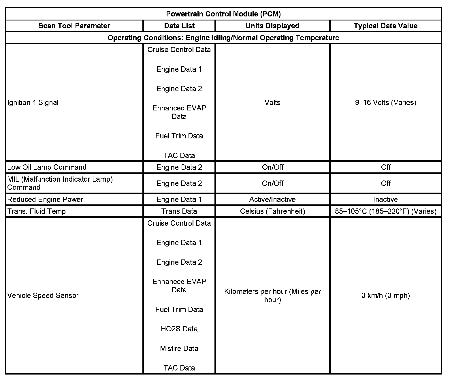 Scan Tool Data List