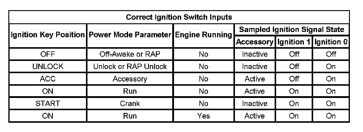 On vehicles that have several control modules connected by serial data circuits, one module is the power mode master (PMM). On this vehicle the PMM is the body control module (BCM). The BCM uses 3 signals from the ignition switch. These are the Ignition 0, Ignition 1, and Accessory.