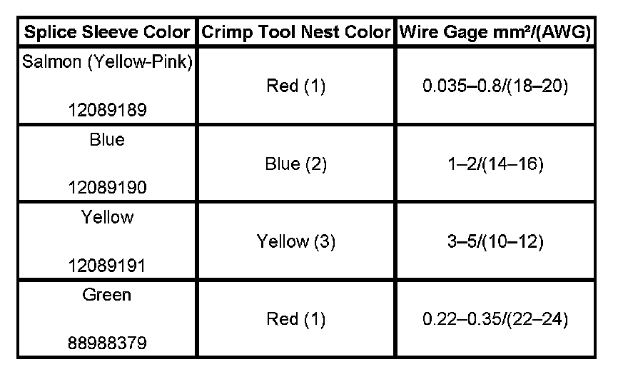 6. Select the proper DuraSeal splice sleeve according to the wire size. Refer to the above table at the beginning of the repair procedure for the color coding of the DuraSeal splice sleeves and the crimp tool nests.