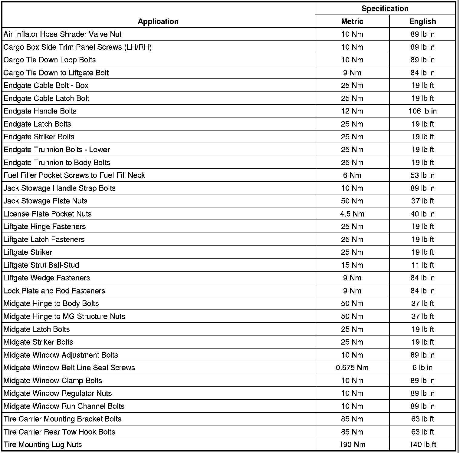 Fastener Tightening Specifications