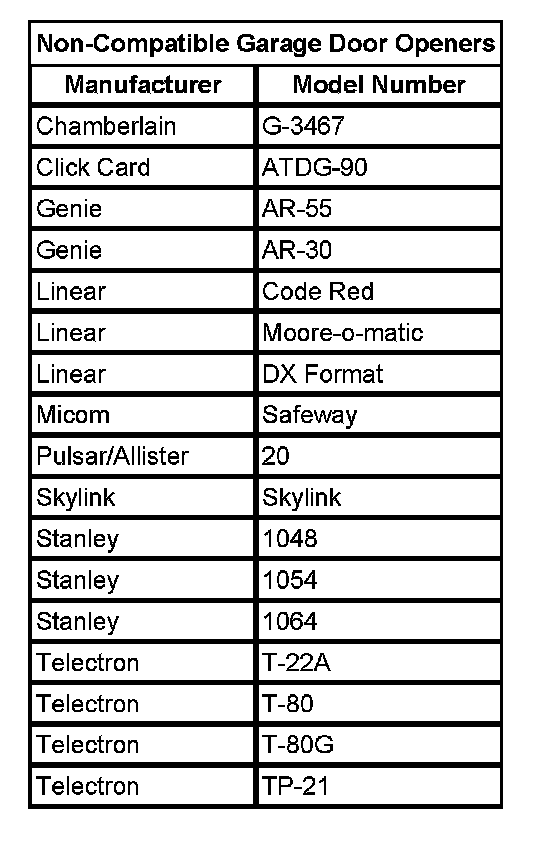 IMPORTANT: Do not use the garage door opener (GDO) with any garage door opener that does not have the stop and reverse safety feature. This includes any garage door opener model manufactured before April 1, 1982.