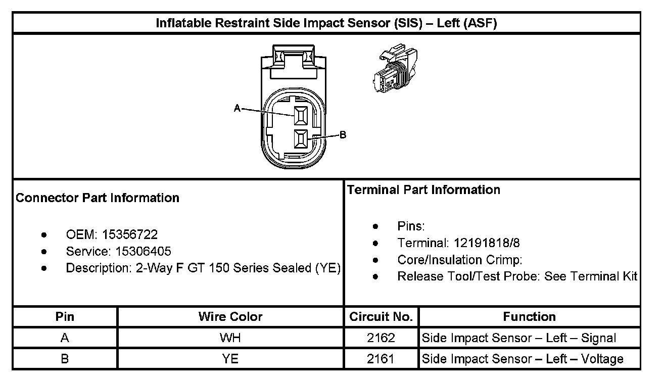Inflatable Restraint Side Impact Sensor (SIS) - Left (With RPO Code ASF):