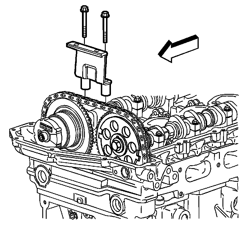 2. Apply threadlock GM P/N 12345498 (Canadian P/N 10953488) to the upper timing chain guide bolt threads.