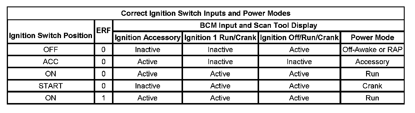Correct Ignition Switch Inputs And Power Modes: